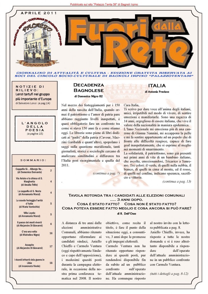 Fuori dalla Rete, APRILE 2011 – Prima Pagina