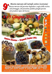 Mostra Mercato del Tartufo Estivo, nona sagra del pecorino bagnolese e della ricotta e dei prodotti tipici locali del Laceno , che si terrà il 4 e 5 giugno nel centro storico di Bagnoli Irpino.