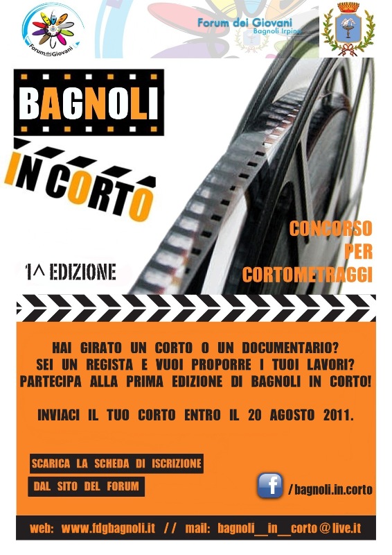 Il Forum dei Giovani di Bagnoli Irpino organizza, con il patrocinio dell’Amministrazione Comunale, il primo concorso di cortometraggio video dal titolo “BAGNOLI … IN CORTO”. Chiunque abbia un proprio video amatoriale, della dura massima di 15 minuti, quale che sia il tema trattato purchè inedito creativo e di qualche interesse dal punto di vista artistico-culturale, ha i requisiti per partecipare alla gara.
