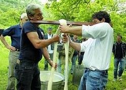 Il giorno dopo, partendo da Rocchetta, facciamo due soste: una a Lacedonia e l’altra a Bisaccia. Di mattina arriviamo a Guardia Lombardi, stiamo fermi tutti il giorno e di sera partiamo per arrivare a Montella. La mattina dopo attraversiamo il paese per arrivare fino alla Piana di Verteglia. Qui, fino ai principi di luglio, mungiamo le mucche e facciamo il caciocavallo. Entro novembre, però, dobbiamo ritornare in Puglia dove, purtroppo, gran parte dei vecchi pascoli stanno finendo, minacciando seriamente la continuazione della nostra attività».