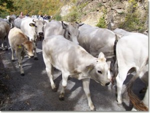 Come descrivere i suoni di una mandria di trecento bovini? È tutto un tintinnio di centinaia di piccoli rintocchi, una cantilena di richiami e urla. È un rincorrersi di uomini e cani che aiutano la mandria a seguire le mucche anziane, quelle con i campanacci più grandi, dal suono più profondo. Le madri chiamano i figli, le anziane tracciano il passo; tra loro uomini a cavallo e, in coda e davanti, quelli a piedi, dietro a chi si attarda.
