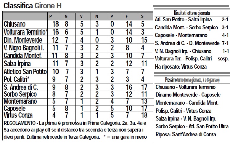 CAMPIONATO DI SECONDA CATEGORIA, GIRONE “H” – OTTAVA GIORNATA GIRONE DI ANDATA