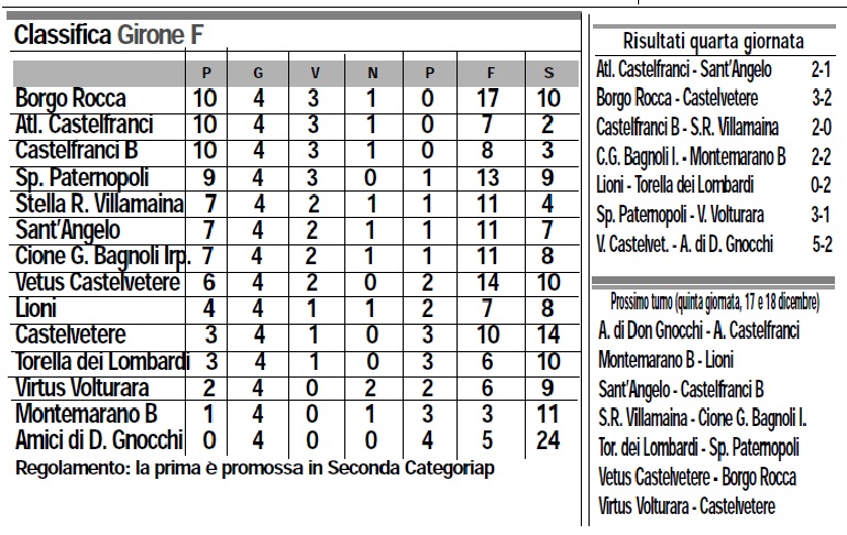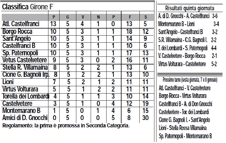 Il campionato riprenderà Domenica 8 gennaio con la trasferta a Salza Irpino