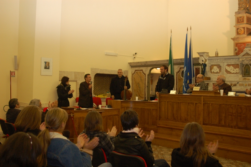 Un ulteriore elemento di riflessione: i nuclei tematici dei componimenti letti. Attraverso la lettura espressiva dell’attore, la platea ha “sentito” lo struggente sentimento ma anche la serena accettazione di una morte troppo prematura (Acciano); il dolore collettivo di un paese che assiste impotente alla tragedia delle donne inghiottite dalla calce bollente (De Rogatis); la mordente invettiva contro una