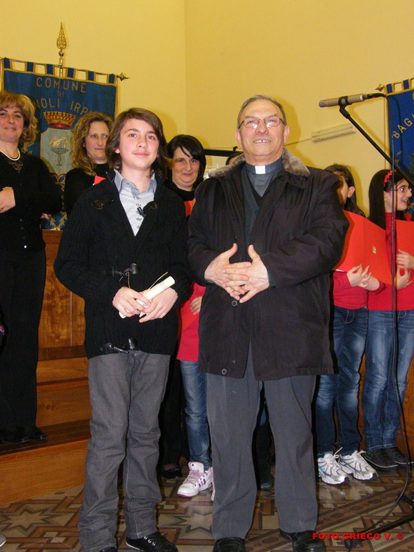 Doverosi i ringraziamenti: innanzitutto a tutti i partecipanti al concorso, a sua Eccellenza mons. Francesco Alfano per la sua presenza e le sue belle parole che di consueto rivolge alla nostra comunità, al sindaco avv. Aniello Chieffo e  all’ amministrazione comunale, alle associazioni che gentilmente hanno offerto i vari premi: il Consorzio Laceno, la Pro loco Bagnoli Laceno e  il Forum dei giovani. Un grazie anche  agli sponsor che hanno permesso con il loro contributo la realizzazione della manifestazione, un ringraziamento particolare inoltre al gruppo canoro parrocchiale diretto da Giuseppina Dell’Angelo,  ai ragazzi della  commissione appositamente costituita : Luigia Tammaro, Cinzia Frasca (nella doppia veste di membro della commissione e presentatrice), Aniello  Pallante,  Gildo Parenti, Nello Patrone, Tommaso Frasca e Giulio Tammaro, a Pascal Marzo per la stampa delle foto  a Luigi Iuppa per l’occasione  “fotografo” ufficiale della serata e dulcis in fundo un ringraziamento speciale al nostro Don Stefano Dell’angelo per l’impegno, i suggerimenti, i consigli e le motivazioni che ci ha trasmesso nel realizzare questa bella manifestazione.