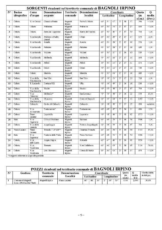 Comune di Bagnoli: Censimento “SORGENTI E POZZI” – 2ª Parte (mb. 5,51)