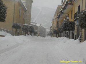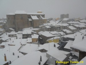 Sta fioccando copiosamente dalle ore 12:00. La neve tende velocemente (e di nuovo) a compattarsi lungo tutte le strade del centro e della periferia. Lo spessore del manto nevoso “cresce” a vista d’occhio … . Vengono segnalati pericolosi crolli di stalattiti di ghiaccio (cannulotti) e neve “ammassata” dai tetti. In un caso specifico è sceso giù anche il comignolo. Fare molta attenzione