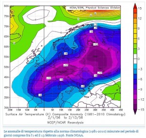 In conclusione di questo nostro editoriale, non possiamo che evidenziare il fatto che, mai come in questo febbraio 2012, si sono viste tante nevicate in un arco di tempo così lungo. A quale periodo invernale paragonare l’evento di febbraio 2012? I dati ormai consolidati ci dicono che in Italia e in Europa qualcosa di simile si è vista solo nel febbraio del 1956 (come dimostra ampiamente la cartina di apertura)!!!