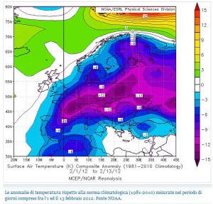 La prima metà del mese di febbraio 2012 sarà ricordata come una fase meteorologica particolarmente fredda e nevosa per l’Italia. Già dagli ultimi giorni di gennaio, il tempo aveva dato segnali totalmente diversi rispetto alla prima parte dell’inverno 2011-2012.