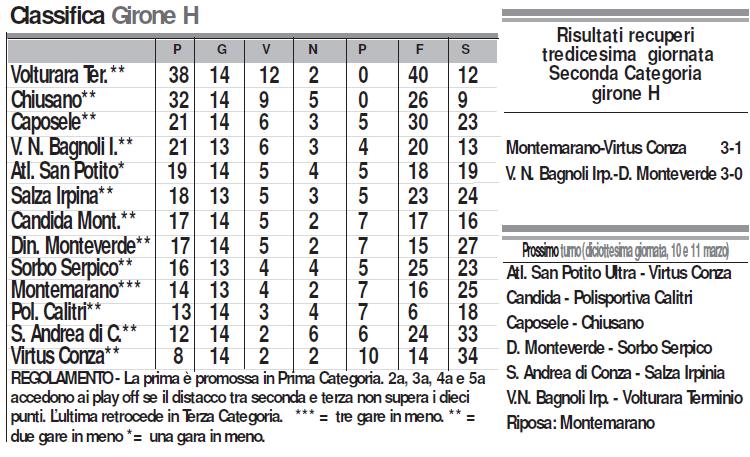 NOTE: pomeriggio piovoso. Gara disputata al “V. Gatti” di Bagnoli Irpino. Terreno di gioco pesante. Spettatori circa trenta.