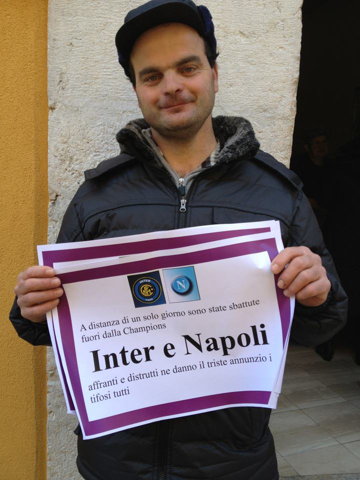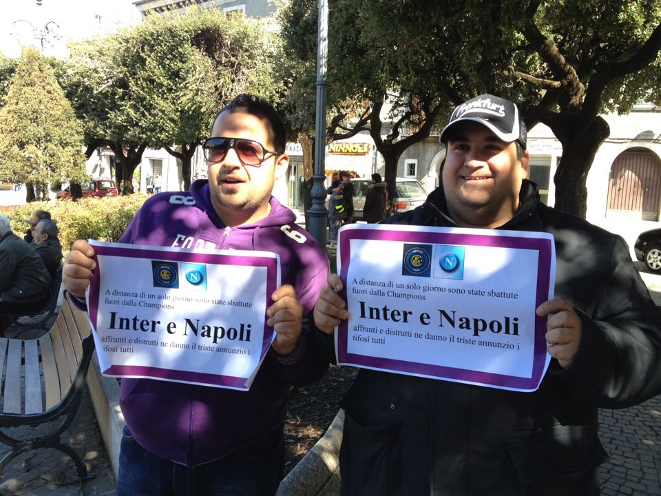 Il manifesto così recitava: «A distanza di un solo giorno sono state sbattute fuori dalla Champions INTER e NAPOLI, affranti e distrutti ne danno il triste annunzio i tifosi tutti».