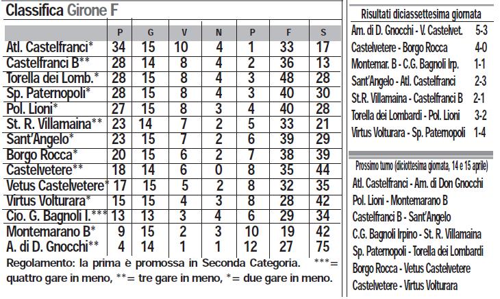 CAMPIONATO DI TERZA CATEGORIA – GIRONE F