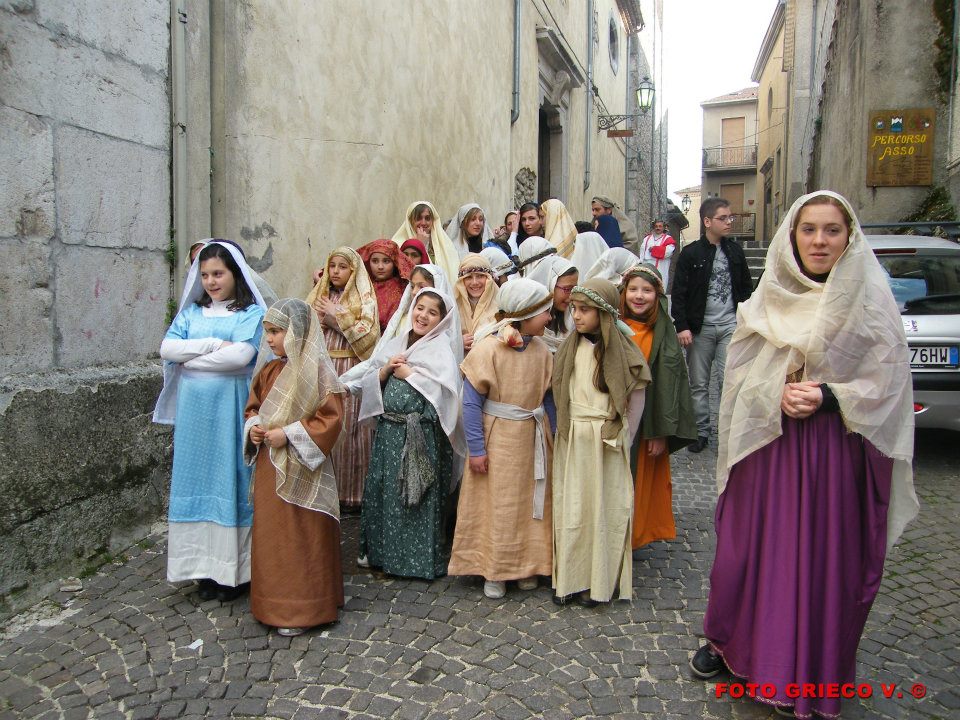 Nessun rigido copione da seguire: le scene sono state soltanto mimate, con grande coinvolgimento dei protagonisti. Laborioso e attento il lavoro di preparazione dei costumi d’epoca, il cui costo, piace segnalarlo, è stato interamente coperto dalle offerte dei fedeli, dagli organizzatori e dagli stessi partecipanti.