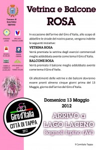 2) “BALCONE ROSA” verrà premiato il balcone meglio addobbato avente come tema il Giro d’ Italia.
