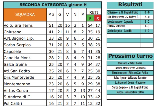 CAMPIONATO DI SECONDA CATEGORIA GIRONE “H” – GIRONE DI RITORNO