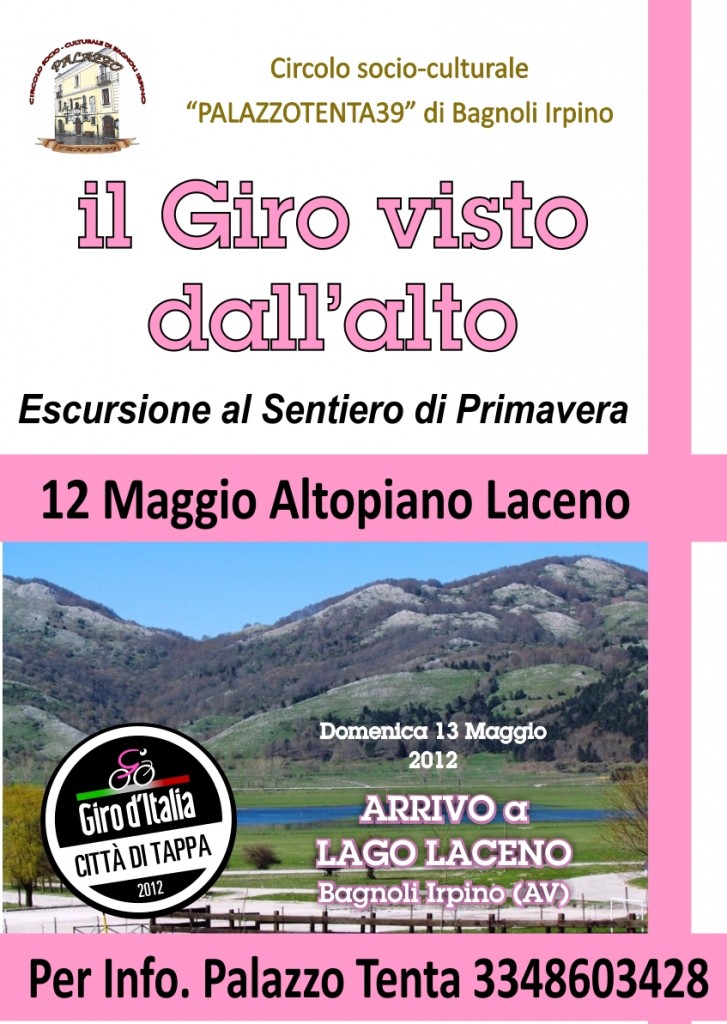 12 Maggio, “Il Giro visto dall’alto” – Altopiano Laceno, escursione al “Sentiero della primavera – Colle del Leone–Valle d’Acera” Per informazione rivolgersi al Circolo “Palazzo Tenta 39” – tel.3348603428.