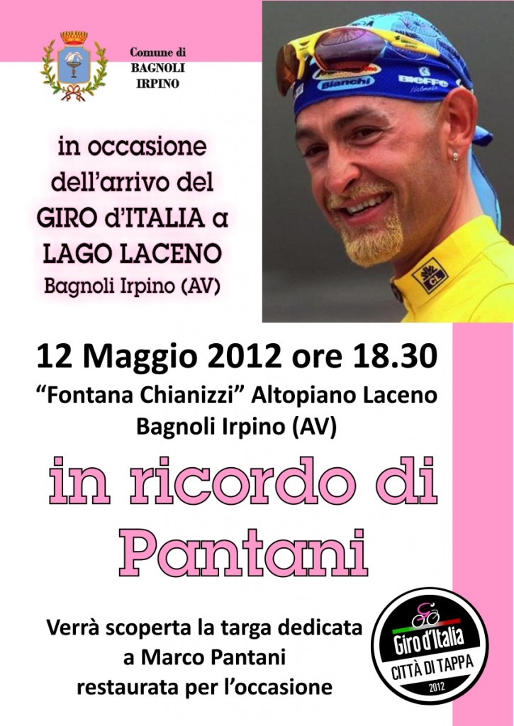 12 Maggio, “In Ricordo di Pantani” – Altopiano Laceno, “Fontana Chianizzi” ore 18:30, verrà scoperta la targa dedicata a Pantani e restaurata per l’occasione.