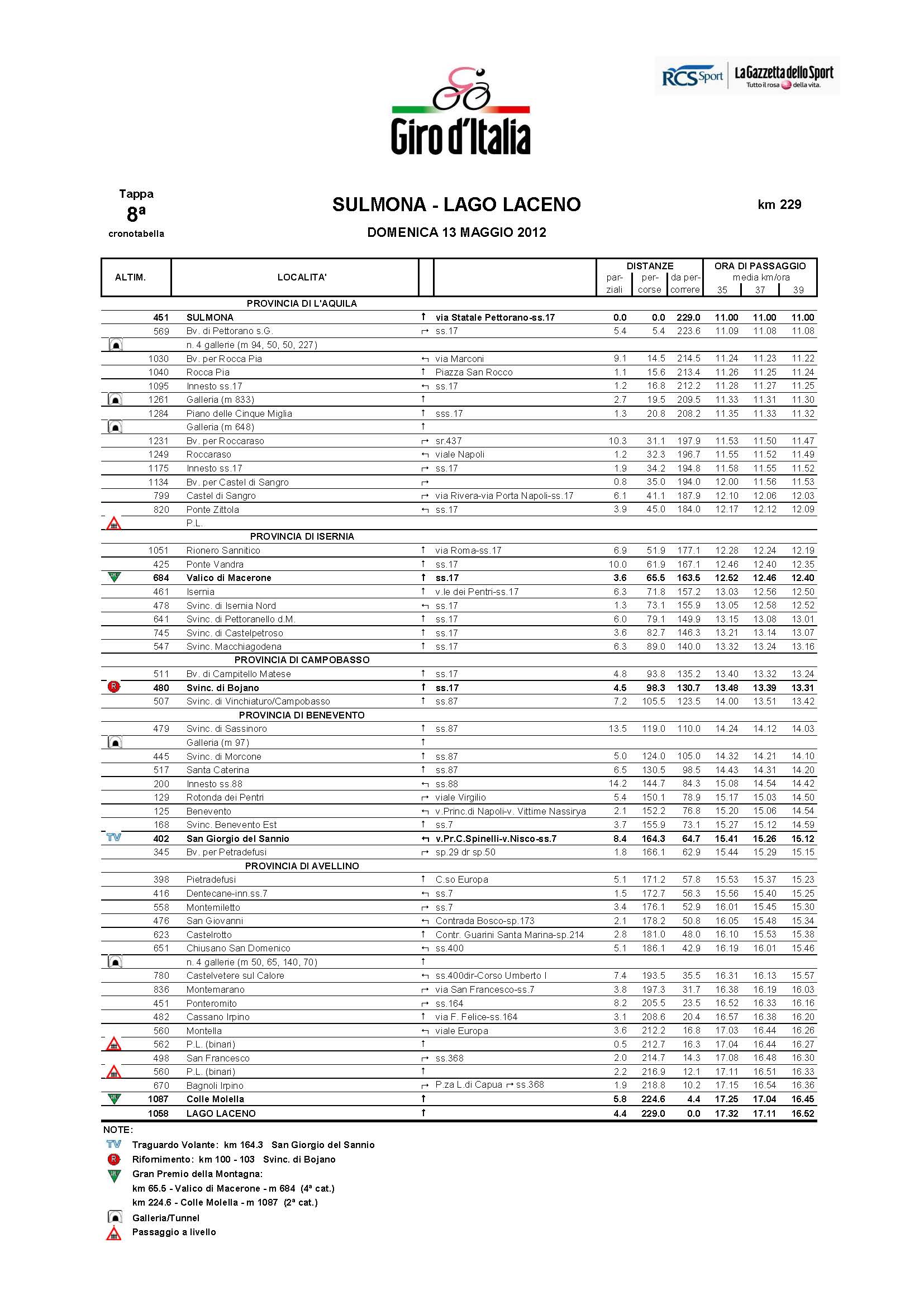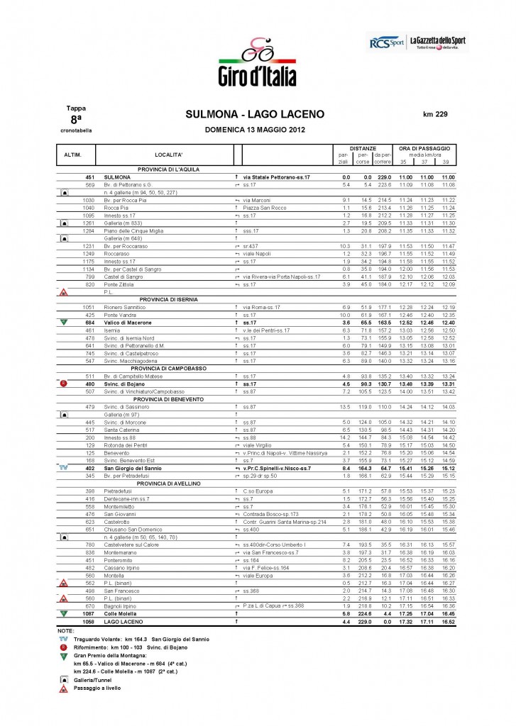 Tappa del Girod’Italia “SULMONA-LACENO” – Domenica13 maggio 2012