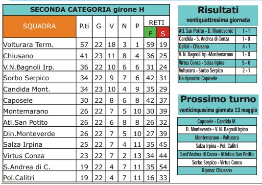 CAMPIONATO DI SECONDA CATEGORIA GIRONE H – GIRONE DI RITORNO