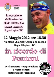 Sempre oggi alle 18.30, inoltre, a Fontana Chianizzi (Laceno), verrà scoperta una targa dedicata a Marco Pantani. Si tratta di una stele in legno restaurata per l’occasione. Nel frattempo, aspettando il Giro, le strade di Bagnoli Irpino si colorano di rosa. Luci a tinta, infatti, sono posizionate in prossimità dei monumenti e di palazzi aristocratici del paese. A questo si aggiungeranno anche due concorsi: il “balcone in rosa” e la “vetrina in rosa”.