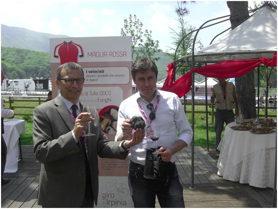 In effetti la giornata di ieri, a parte quelle giuste proteste per problemi ormai atavici, è stata un’ottima vetrina per le bellezze ed i prodotti dell’Irpinia. Nell’area del quartiere di tappa grande entusiasmo, per succulenti buffet di prodotti tipici locali e mostre delle prelibatezze del posto, dai funghi porcini al vino al famoso e rinomato tartufo di Bagnoli Irpino. Alla fine anche la maglia rosa ed il vincitore di tappa hanno posato con un tartufo di Bagnoli. Ed a tappa conclusa, mentre Pozzovivo e la maglia rosa erano in conferenza stampa, non potevano mancare le note della Tarantella Montemaranese che ha chiuso in bellezza una giornata che l’Irpinia non dimenticherà e che vorrà prendere come esempio per il rilancio della sua economia, del suo turismo e del suo futuro. Ed allora ciao Giro d’Italia, ti aspettiamo nel 2013.