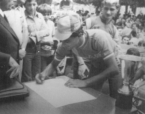 Fu una bella esperienza. La gente urlava il mio nome. Anche quando salii sul palco per la premiazione, in quella tappa vinta da DeVlaeminck, e dove la maglia rosa passò da Moser a Gimondi. Proprio Gimondi sapendo che ero originario di quei luoghi mi chiese della salita e di Come fosse. Io gli spiegai che era una salita dura e lui sul palco mi disse: “avevi ragione era proprio una salita dura!”. Ricordo che fu una bella festa.