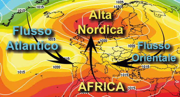 Adesso tutta la struttura si sposterà verso sud-est, andando a penalizzare le regioni meridionali e quelle centrali adriatiche. Per di più c’è da segnalare che una rimonta di aria calda di origine nord-africana, tenderà a raggiungere una cellula di alta pressione sul nord Europa. Questo farà sì che sul bordo orientale della stessa, inizierà a confluire aria fredda in quota che avrà come obiettivo la regione balcanica e le zone adriatiche centro-meridionali. Il risultato di questo “percorso” sarà quello che nelle zone appenniniche centro-meridionali, si formeranno cellule temporalesche pomeridiane che per tre o quattro giorni porteranno un’elevata instabilità soprattutto nelle suddette zone. Quindi un’ ulteriore fine settimana variabile se non perturbato è da attendersi soprattutto per le regioni interne della nostra penisola.