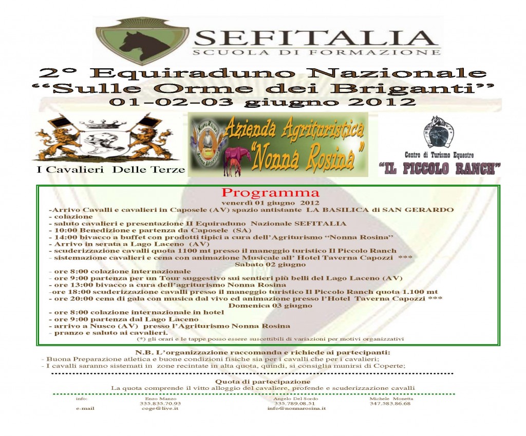 Si svolgerà a Laceno dal 01 al 03 giugno il secondo equiraduno nazionale “Sulle orme dei briganti”.