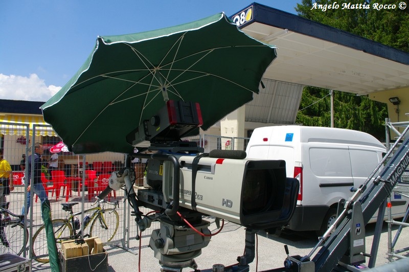 La carovana con la sua musica e i suoi infiniti colori sfila rapida dinanzi l’arrivo situato nei pressi dell’area di servizio e qualche istante dopo dal silenzio classico di una folla che aspetta, si passa al frastuono eccitante dell’elicottero che riprende ogni angolo del comprensorio e dei tifosi che sostengono e spingono a voce il trionfo di Domenico Pozzovivo.