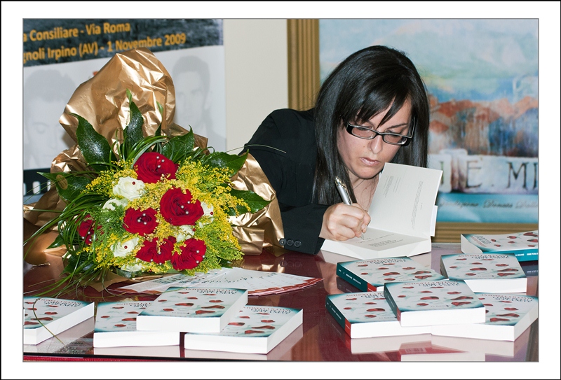 “Come petali sulla neve mi sta cambiando l’esistenza, mi porta emozioni a non finire … alla presentazione del libro ho fatto il pieno, ero talmente ebbra di complimenti che mi sono addormentata alle 5 del mattino … ho firmato quasi tutte le copie rimaste, sono stata consacrata scrittrice nella mia terra, un orgoglio indescrivibile nonostante il neotitolo attribuitomi … mi son pure commossa (se no non ero io) … grazie a tutti vicini e lontani per essere stati il mio supporto”.