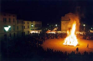 Assimilabile ai fuochi rituali all’aperto era il rogo in cui veniva bruciato il fantoccio di Segalavecchia, anche se questo rito era piuttosto una pratica propiziatoria della fecondità. Tra febbraio e marzo, il giovedì di metà Quaresima, cadeva il rito di Segalavecchia, che era ancora vivo nelle nostre campagne un cinquantennio addietro. La funzione del falò potrebbe essere la stessa degli altri fuochi, cioè propiziatrice del calore del sole, che d’inverno è debole. Sostengono altri antropologi che la Vecchia, immagine della Quaresima, rappresenterebbe la sterilità e, bruciandola, si compie un rito di fertilizzazione. Comunque sia, il rituale di Segalavecchia testimonia riti e usanze che risalgono alle religioni dei popoli italici indigeni. Dunque, al ventesimo giorno della Quaresima gruppi di giovanotti con tamburi e armonica giravano per i casolari di campagna, portando in spalle un fantoccio di legno vestito da Vecchia. E intonando un canto di questua (a S. Angelo), chiedevano soppressate, uova, vino: