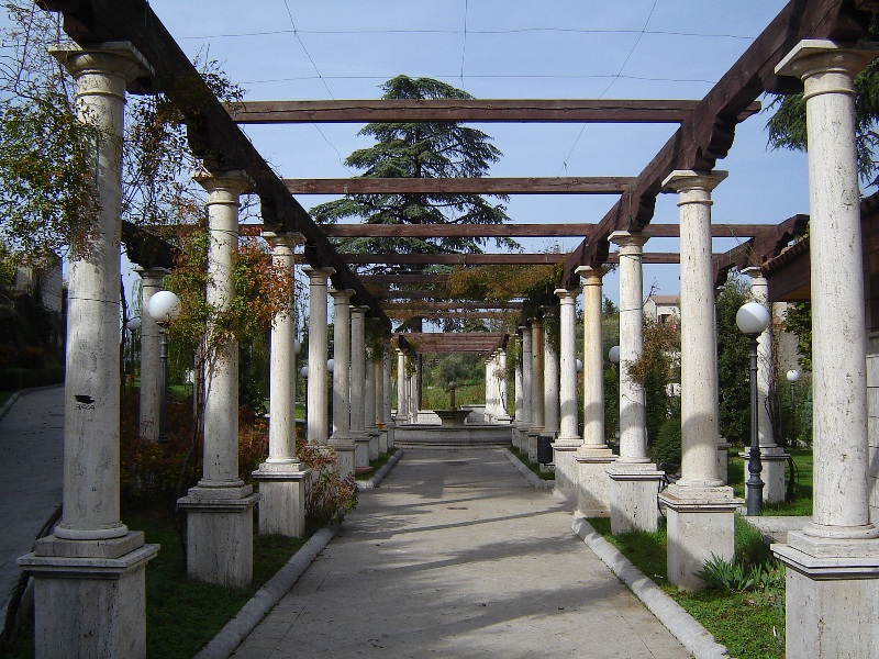 2) Un duplice filare di colonne di “ordine toscano” sormontate da architravi di legno pregiato (per il costo) potenziale pergolato … dopo un decennio è ancora … scheletrico!