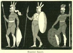 Il territorio occupato era quello dell’Alta valle del Calore, quando essi giunsero alle sorgenti del fiume. Razziatori e predoni, i Sanniti si spostavano con un rito detto “Ver sacrum”. E’ certo che con un primo rito essi giunsero nella nostra penisola, occupando successivamente buona parte del centro Italia. Chi meglio di tutti narra il rito del “Ver sacrum” è ancora Strabone, che così lo descrive: “Circola una tradizione secondo la quale i Sabini, impegnati da molto tempo in guerra contro gli Umbri, fecero voto (come certe popolazioni greche) di consacrare agli dei tutto ciò che sarebbe nato in quell’anno. Conseguita la vittoria, parte ne immolarono, parte consacrarono; ma scoppiata una carestia, qualcuno sostenne che bisognava consacrare anche i figli. Così fecero, e consacrarono ad Ares i figli nati durante l’anno. Non appena divennero adulti, li inviarono a fondare una colonia: fece loro da guida un toro. Poiché il toro si fermò a riposare nel Paese degli Opici (l’attuale Molise), essi li scacciarono, si stabilirono sul posto e lì sacrificarono il toro ad Ares, che lo aveva dato come guida.