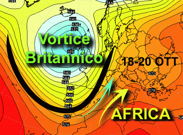 In una prima fase (9-12 ottobre) la situazione meteorologica per il nostro paese sarà di una relativa tranquillità. Qualche precipitazione quà e là non mancherà, ma in un contesto di estrema variabilità. Una svolta dovremmo aspettarcela nella fase successiva (13-18 ottobre) quando una depressione alquanto efficace potrebbe portarci le sospirate prime piogge autunnali un pò per tutto il paese. La terza decade del mese di ottobre dipenderà molto da come evolverà la figura depressionaria che dovrebbe interessarci proprio nella prossima settimana. Nello stesso tempo bisognerà dare un occhiata particolare all’evoluzione dell”ampia zona di alta pressione situata a latitudini particolarmente settentrionali dell’emisfero boreale. Riteniamo possibile una sua interferenza per il nostro paese. Una collocazione, con i suoi massimi, nel cuore della penisola balcanica significherebbe relegare un probabile flusso perturbato atlantico solo per le regioni settentrionali e parte di quelle centrali tirreniche, con richiamo di aria temperata per il meridione e per le regioni centrali del versante adriatico. Altresì una collocazione più settentrionale, ed una eventuale congiunzione con l’alta pressione delle Azzorre, potrebbe aprire due scenari contrastanti fra loro.