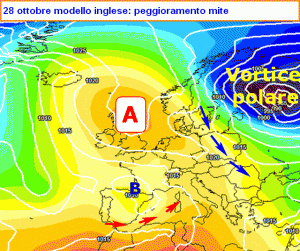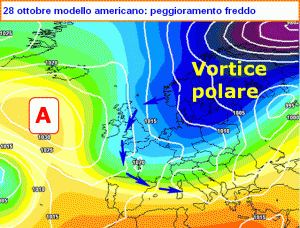 Venendo al successivo fine settimana, le analisi sul medio-lungo termine, evidenziano scenari obiettivamente alternativi fra loro. Noi in questo editoriale inseriamo 2 situazioni che i modelli hanno emesso questa mattina e che si riferiscono alle 00 di domenica 28 ottobre.