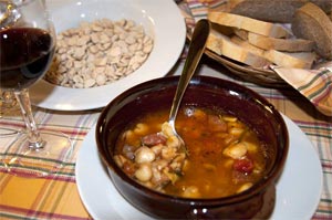 Segue una zuppa di chichierchie provenienti dal mercato dei legumi che si tiene presso il Santuario di San Gerardo a Materdomini, con “salsiccia pezzente” e verdure dell’orto; un primo di ravioli ripieni di ricotta di mucca Jersey, deliziose costolette di agnello al forno con contorno di patate e verdure. Anche il dolce, una morbida torta di fragole, è squisito.