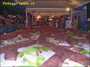 pressi del rione della Giudecca. Tappa obbligatoria allo stand 97 di Gelsomina Colantuono per il famoso caciocavallo ‘mpiccato da “Palone”. La fila è assicurata, ma vale la pena farla. E siamo al dolce. Quest’anno va di moda il gelato di castagne realizzato dalla signora Ornella del Bar Roma. Siamo nella centralissima piazza Leonardo Di Capua ed è impossibile non accorgersi della vetrina, completamente addobata con castagne. «La ricetta – ci spiega la signora Ornella – è quella che mi ha insegnato mio suocero e che si tramanda da anni: mettere a macinare 700 gr di castagne nel rum e con 700 gr di zucchero, quindi aggiungere tre litri di latte e dopo 24 ore frullarlo. Bisogna poi aggiungere il fior di panna, dunque mantecare ». Una ricetta che la signora Ornella ha presentato anche sulla Rai a La Vita in Diretta. Quest’anno al punto 17 sono tutti in coda per provare il gelato. Da abbinare con dell’ottima grappa o del rum.