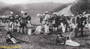 Di tono più dimesso e lineare, ma forse ancor più apprezzabile per la genuina sincerità dello sguardo e finanche per una velata ironia, è la poesia che all’altopiano irpino (storica sede di esercitazioni militari) dedica agli inizi del ‘900 il poeta Lorenzo in un volumetto di grande successo all’epoca, Il canzoniere del soldato, edito nel 1902 a Genova dai fratelli Pagano. I versi, come ci informa in nota l’autore, furono scritti nel luglio dell’anno precedente e proposti ai lettori con il titolo Tiri di guerra (Al piano di Laceno):