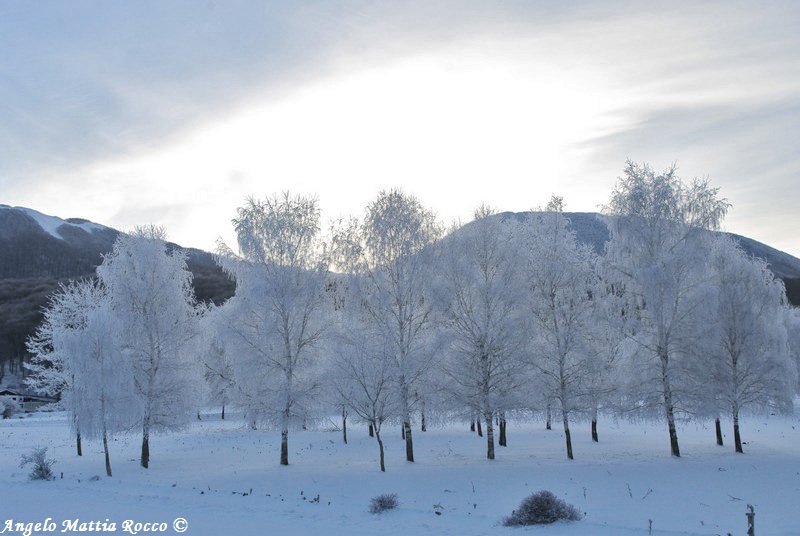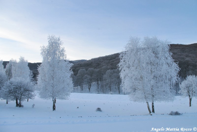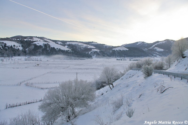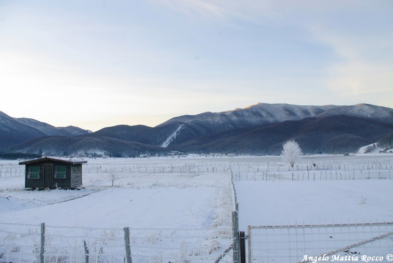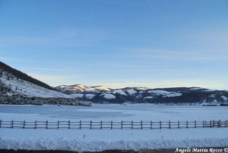 Alle 6.00 di oggi parto alla volta di Lago Laceno e verso le 7.30 sonosulla piana per aspettare che le prime luci si alzino. Il ghiaccio è l’elemento predominate, un bianco lucente e avvolgente raccoglieva con un abbraccio tutta la valle e l’occhio non poteva che apprezzare quello che madre natura gli stava offrendo. Auguro a tutti, almeno una volta nella vita, di assaporare l’ebrezza di temperature gelide in una giornata di sole…non ci sarà da pentirsene.