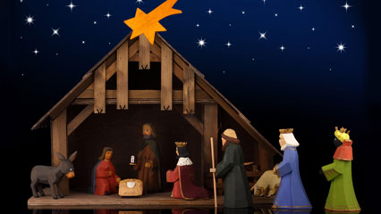 Una stella brilla nel cielo / mentre le pecore fuori al gelo / si avvicinano pian pianino / alla culla del dolce bambino. / Un timido contadinello / porta in dono un agnello.