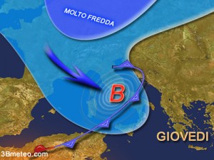Giovedì 17 gennaio: la depressione già presente sull’Italia da diversi giorni, sarà di nuovo alimentata da aria fredda. Le precipitazioni interesseranno maggiormente le regioni del centro-sud. Un temporaneo richiamo umido, determinerà l’innalzamento della quota neve, relegando la stessa a quote collinari al centro, più in alto sui rilievi meridionali. Fra la tarda serata e la nottata, la neve è prevista scendere a quote collinari anche in Campania. Tempo freddo, ma senza precipitazioni degne di rilievo al nord.