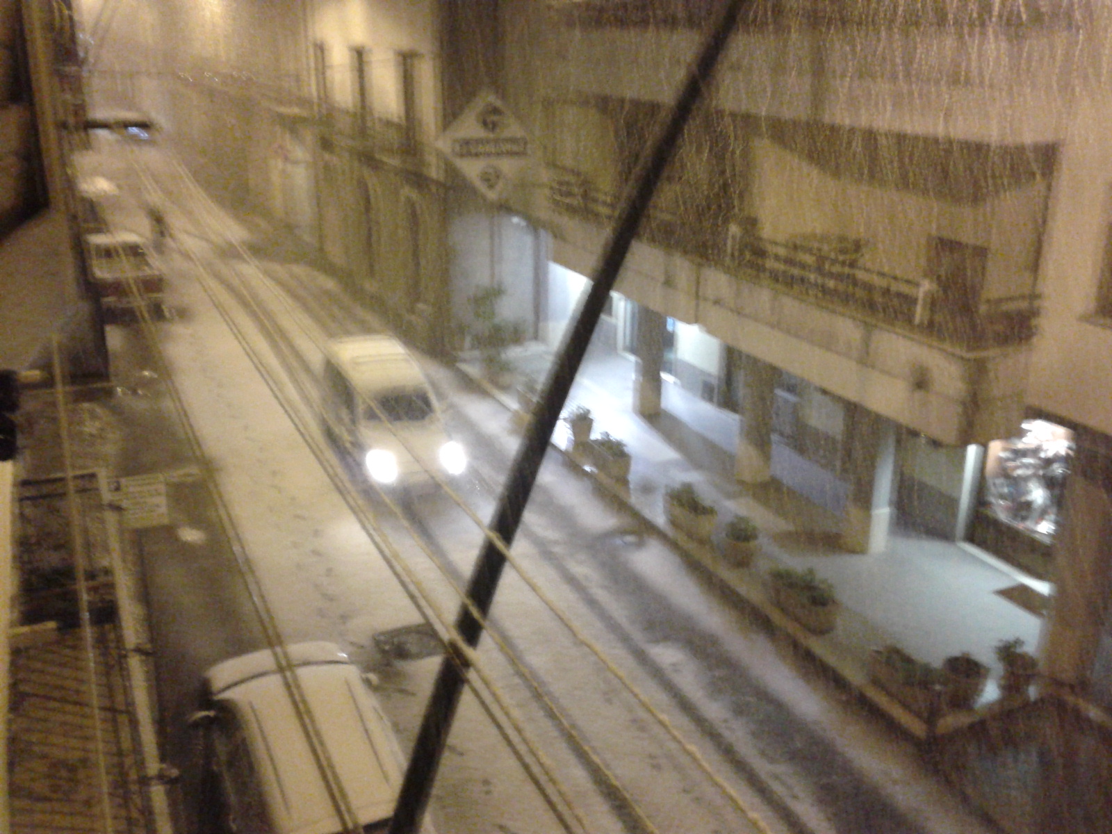 Il manto nevoso in poco meno di un’ora ha raggiunto i 10 cm di spessore. Poi, improvvisamente, con il rialzo termico, di nuovo la pioggia e la nebbia … Vediamo la nottata cosa potrà riservarci …