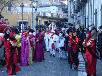 Febbraio, corto e amaro, è vero! Ma l’amarezza legata a questo mese non è solo dovuta al rigore del clima; il mese reca con sé pure l’afflizione dell’astinenza quaresimale, che era ancora più dura da sopportare. Proprio quando avevamo maggiore bisogno di calorie, noi mettevamo a dura prova il nostro corpo già costretto a sopportare il rigore del clima. L’astinenza dai cibi grassi era imposta più che da una norma devozionale (quaresima, in ricordo del digiuno di Cristo nel deserto), dalla scarsità di riserve alimentari, lamentata dal contadino allo scadere del’inverno. E la dieta in questo periodo era a base di patate, legumi e verdure; e per giunta, ogni pietanza rigorosamente scondita. Però, prima di sottomettersi al regime della quaresima, il contadino si concedeva ben cinque giornate di gozzoviglia, dando fondo ai cibi più sostanziosi (prosciutto, salame, carne) e non rinunziando ad abbondanti bevute fino a raggiungere spesso lo stato di ubriachezza. Le cinque giornate erano costituite dal martedì grasso di Carnevale (quest’anno cade il 12) e dai quattro giovedì delle settimane precedenti, i giovedì grassi, che nel 2013 hanno tale scadenza: Il primo (17 gennaio) è lu gioverì r’ li cumpagni, si faceva bisboccia con gli amici; il secondo (24 gennaio) è lu gioverì r’ li cumpari, si banchettava con i compari di cresima e di matrimonio; il terzo (31 gennaio) è lu gioverì r’ li parienti, al terzo banchetto erano invitati i parenti; il quarto (7 febbraio) è lu gioverì r’ li pezzienti, il quale era aperto a tutti.