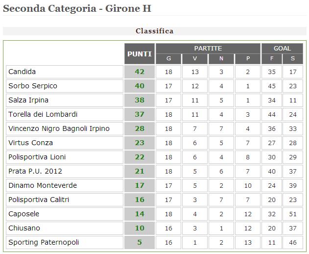 CALITRI: Bozza, Cerreta, Bavosa (Toglia), Maffucci, Stanco, Grasso, Di Maio, Paglialonga, Leone, Cestone, Di Maio V. A disp. Rosania. All. Maffucci Michele.