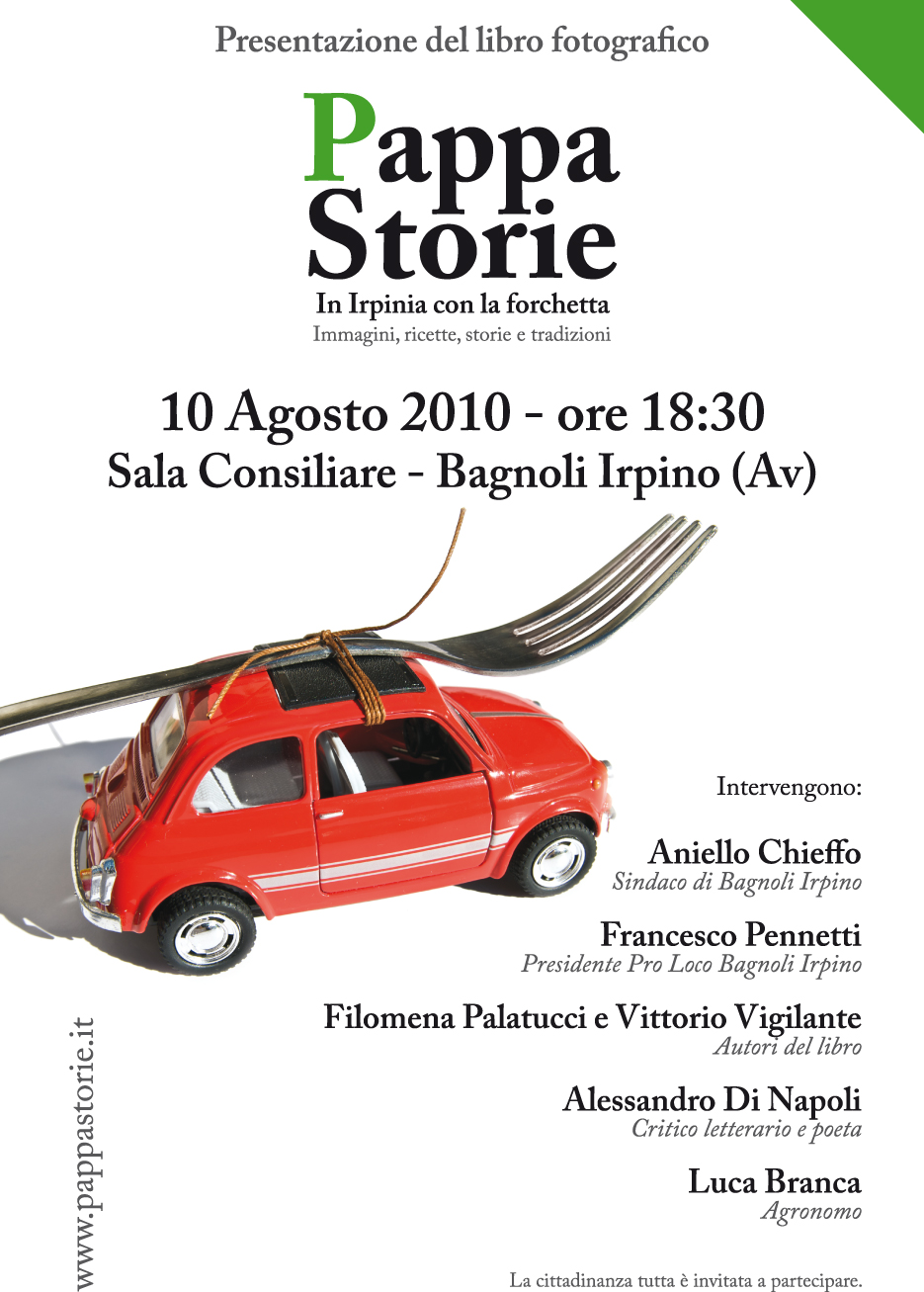 Presentazione del libro fotografico. Martedì 10 agosto 2010 – ore 21:30 Sala Consiliare in Via Roma. Intervengono: Filomena Palatucci Ideazione del progetto e testi; Vittorio Vigilante Fotografie e grafica; Alessandro Di Napoli Critico letterario e poeta; Luca Branca Agronomo. Nel corso dell’evento degustazione di caciocavallo podolico e vino aglianico.