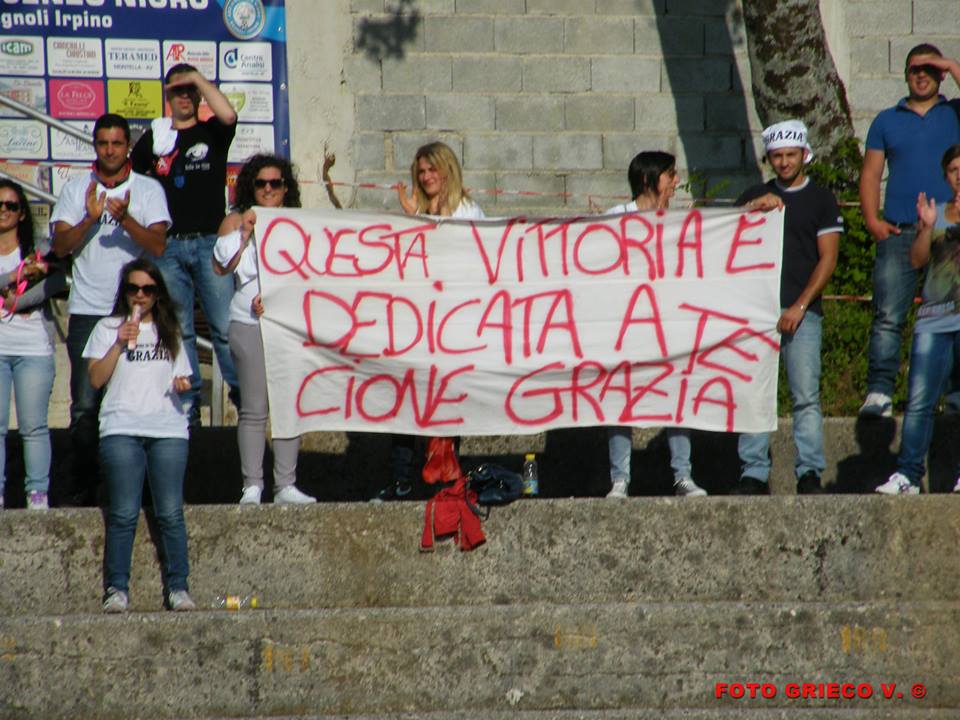 Due anni fa tutto è nato dall’intuizione di Vivolo Vincenzo e Santoriello Andrea di creare un gruppo di ragazzi che libero da impegni nel fine settimana, potesse dar vita ad una nuova formazione con l’obiettivo unico di divertirsi attraverso il gioco del calcio. Col successivo avvento dei nostri presidenti, pur rimanendo tale obiettivo, si decise di creare un’organizzazione più complessa che portasse in giro per l’Irpinia il nome della “nostra” Grazia, un riconoscimento postumo a quella che è stata una delle persone più amate nella nostra comunità, una ragazza solare che come tutti i giovani amava divertirsi ma che in modo non comune aveva un gran senso del lavoro. Proprio queste sono state le caratteristiche e gli obiettivi che ci si è prefissati successivamente, divertimento e lavoro coniugati insieme per raggiungere traguardi importanti. Ora sarebbe troppo facile invocare il suo nome in virtù di questa vittoria, eppure io sono convinto che in ogni risultato ottenuto, inseguito, strappato, consolidato, dietro ogni successo c’è stato un aiuto divino, perché gli angeli sono custodi della vita di tutte le persone che li amano o li invocano, così mi piace pensare che dietro ogni gol, parata o azione decisiva c’era la sua mano a sospingerci, c’era la grinta che l’ha contraddistinta. Se questo gruppo ha trionfato molto del merito va al suo aiuto, a quella motivazione extra che l’ha animato, perciò questa vittoria è tutta dedicata a te Cione Grazia!!!