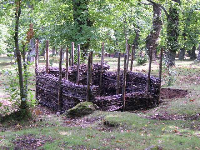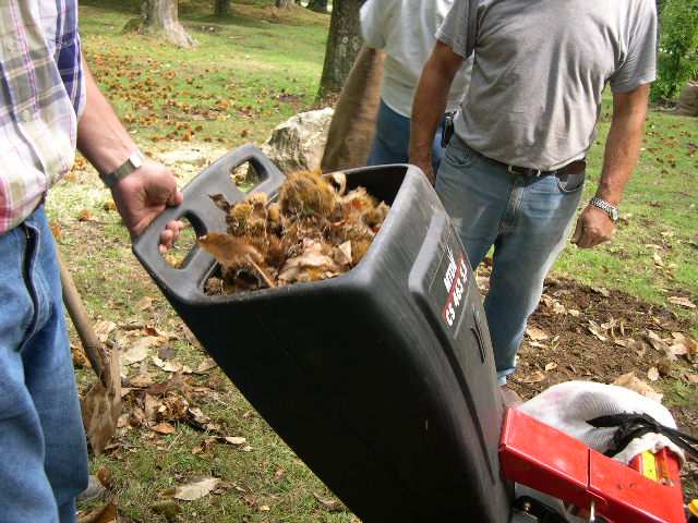 • si realizza un cassone utilizzando pali e fascine (foto 1) oppure un avvallamento del terreno gia’ esistente; • si sminuzza con un biotrituratore (foto 2) il materiale raccolto; • si raccoglie il tutto nel cassone, si copre con uno strato di terreno e si fa fermentare per 6 mesi; • si usa il compost ottenuto (foto 3) per riempire avvallamenti o per concimare piante vecchie di castagno o piante giovani appena messe a dimora.