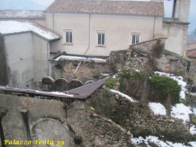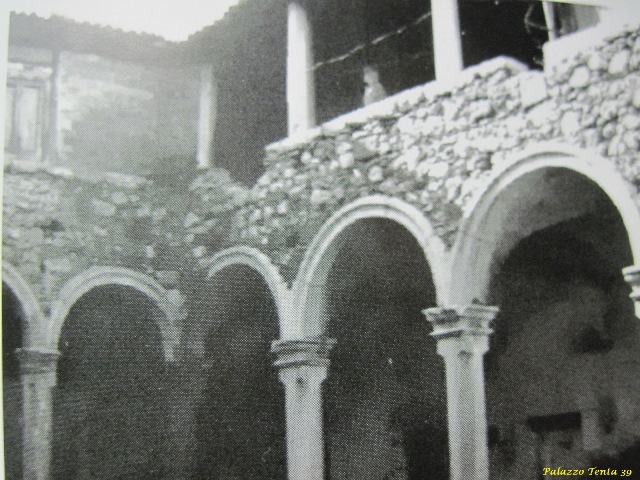 Uscendo si accedeva al convento da una porta sulla destra che dava su uno stupendo chiostro in stile rinascimentale con archi e colonne in travertino a reggere il loggiato sovrastante. Nel mezzo alimentata da una sorgente c’era la fontana che ora è in piazza (invece del putto aveva una colonna e una vasca). Al primo piano c’erano le aule e al secondo le celle dei frati. In tutto il convento c’erano gli stemmi del paese e secondo un documento del 1816 c’erano in tutto ventidue vani soprani e otto sottani.