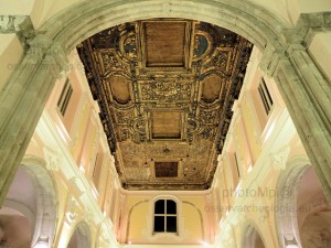 La chiesa è lunga trentacinque metri e il transetto ne è largo ben trentadue. In quel tempio c’erano tantissime opere d’arte, una meraviglia dietro l’altra: era addirittura più bella della cattedrale e non sfigurava nemmeno a paragone con S.Domenico Maggiore in Napoli. Il soffitto era formato da cornici in legno intagliate e dorate in cui erano stati rappresentati gli episodi della vita di S.Domenico con i santi dell’ordine (già all’epoca di Bucci erano in pessimo stato). I pilastri sono in travertino e ricoperti da intonaco.