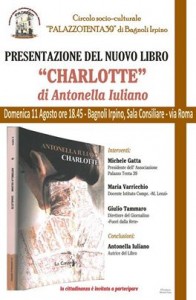Il giorno 11 agosto 2013 presso la sala consiliare di Bagnoli Irpino si è tenuta la presentazione di “Charlotte” il mio secondo romanzo. L’evento è stato da me vissuto con grande emozione, ma fortunatamente con meno nervosismo e agitazione di un anno fa, quando sempre grazie al supporto di Palazzo Tenta e del suo presidente Michele Gatta, ho potuto presentare al mio paese e ai vacanzieri allora sul posto, il mio primo figlio letterario: “Come petali sulla neve”.